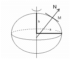 In concluzie, in a doua aproximatie, Pamantul se asimileaza unui elipsoid de revolutie, obtinut prin rotatia elipsei meridiane in jurul axei mici (2b), numita si axa polara (fig.3). Dreapta N care trece prin punctul oarecare M si este perpendiculara pe suprafata elipsoidului, se numeste normala la elipsoid.