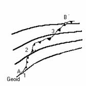 Considerand douǎ suprafete de nivel gravitationale apropiate "S" si S' si douǎ traiectorii ortogonale AA' si BB' reprezentand directiile verticalelor (fig.7.2), atunci lungimile segmentelor pe verticale AA'= h si BB'= h' le considerǎm rectilinii, desi in realitate sunt usor curbilinii.
