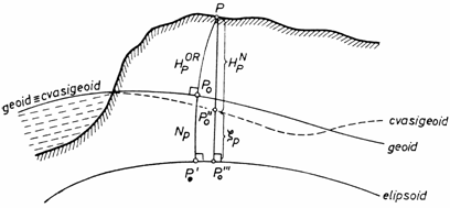 ortometrice suprafata de referinta este geoidul (notiune introdusa de Listing