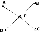 Considerand cunoscute cotele punctelor A,B,C,D, (fig.7.9.) se determinǎ diferentele de nivel spre punctul "P" cu relatia (7.96.). Cota punctului "P" se determinǎ cu relatia: