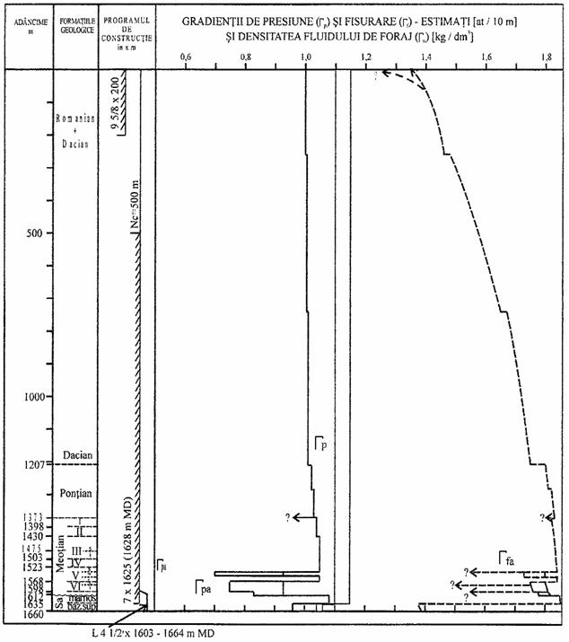 Pentru a evita posibilitatea aparitiei pierderilor de circulatie in complexele meotiene si sarmatiene, densitatea fluidului de foraj va fi mentinuta la valoarea minima proiectata .