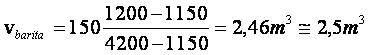 Conform relatiei (2.7) se stabileste cantitatea de barita necesara pentru prepararea acestui fluid: