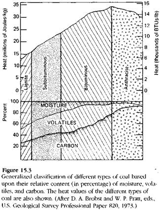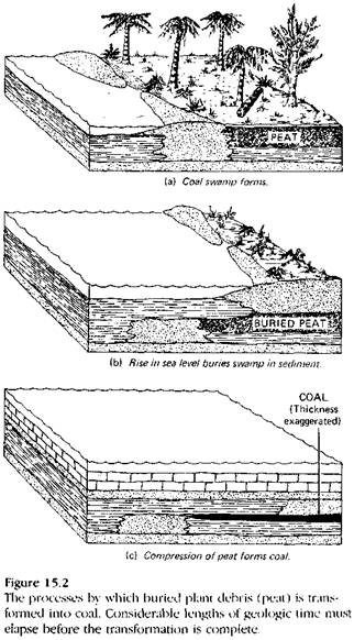 Cresterea populatiei si a nivelului de civilizatie atrage dupa sine un consum energetic sporit, cum ar fi de ex. electricitatea in societatea industrializata. Originea combustibililor fosili (carbune -Fig. 15.2 si 15.3, petrol - Fig. 15.14, si 15.15) este asociata genetic ciclului geologic. Asemenea combustibili reprezinta, de fapt, o acumulare de energie solara sub forma de materie organica, care a evitat distrugerea integrala prin oxidare.