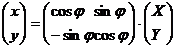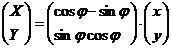 Fie un sistem national (istoric) XOY si un sitem local xOy. Pentru un punct P legatura dintre cele doua siteme este data prin relatiile: