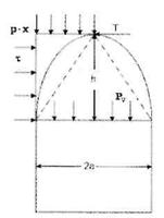 Punand conditia ca greutatea rocilor care se afla in interiorul boltii parabolice sa fie echilibrata de forta la tractiune dupa bolta parabolica, rezulta: