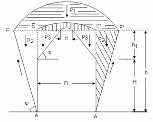 Fig.5.2. Schema de calcul a presiunii dupa M.M. Protodiakonov