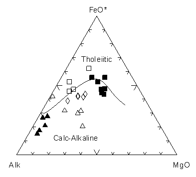 Fig.3.7. - Diagrama FAM pentru rocile magmatice din