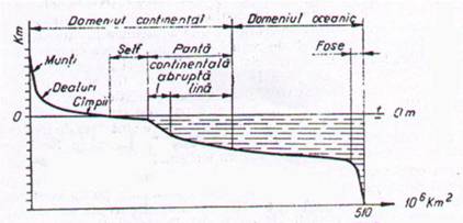 Aria continentala cuprinde: muntii, podisurile, campiile si selful, iar racordarea cu domeniul oceanic se face printr-o zona numita "panta continentala"(fig.5).