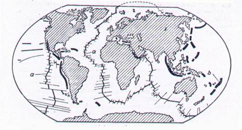 Fig. 7. Pozitia dorsalelor medio-oceanice si a foselor oceanice :