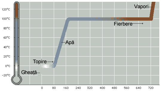 Corpurile se pot afla in stare solida, lichida sau gazoasa si pot trece dintr-o stare in alta. Cand ingheata, apa se transforma in solid, iar cand fierbe se transforma in vapor Cand gheata se topeste, trece din stare solida in stare lichida, adica apa. Cand apa fierbe, se transforma in gaz, adica vapor Trecerea unui corp din strare solida in stare lichida si din stare lichida in stare gazoasa se face prin incalzire, care ii furnizeaza energie calorica, intensificand astfel agitatia moleculara.