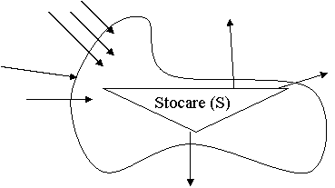 In figura 2.3 se prezinta schema sistemului hidrologic in care sunt cuprinse intrarile, componentele si iesirile din sistem. In figura se utilizeaza urmatoarele notatii: