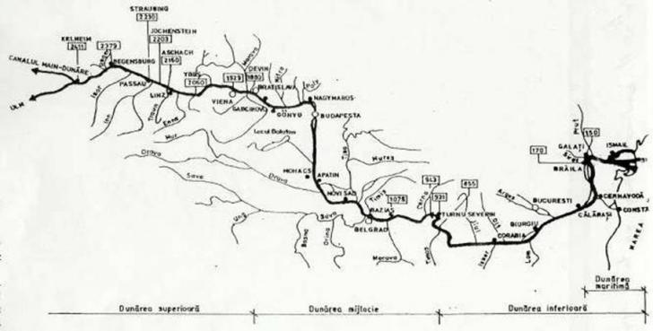 Harta 2.1 Cursul navigabil al Dunarii intre Sulina si Kelheim