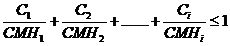 Suma concentratiilor diferitilor radionuclizi (C1,C2,Ci) raportata la concentratia maxima admisa pentru fiecare radionuclid in parte sa fie mai mic sau egal cu 1.