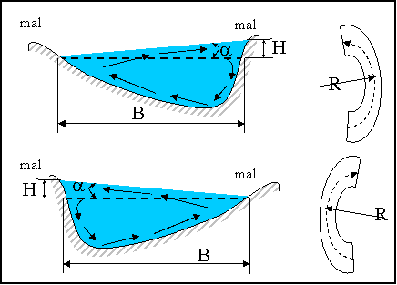 circulari cu o singura directie, care iau nastere in zona adanca a albiei