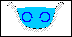 b) Tipul II: Curenti convergenti. Acestia converg din adancuri spre suprafata si de la maluri catre mijlocul raului. Caracteristic la rauri late, adanci si cu viteze mari. (Figura nr. 5)