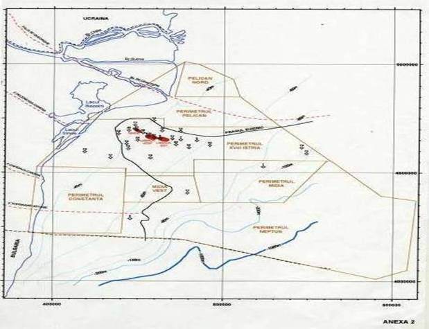 In Marea Neagra, in apele teritoriale ale Romaniei (vezi harta 3)[5] se efectueaza exploatari de petrol prin intermediul sucursalei Petromar Constanta. In intervalul 1976 (constituire) -2000, o succinta analiza a functionarii acesteia releva urmatoarele activitatea desfasurate pe selful romanesc al Marii Negre: