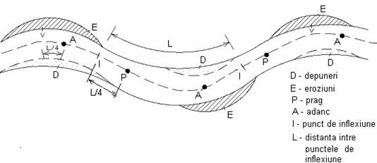 Adancurile sunt amplasate in curbe si sunt portiuni relativ lungi, cu panta mica de curgere si cu adancimi mari de apa.
