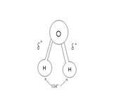 Apa H-O-H are 2 legaturi de oxigen- hidrogen egale intre ele ca lungime care formeaza intre ele un unghi de 104,5°.