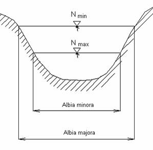 Albia minora este partea cea mai joasa a raului, ocupata permanent de apa, fara vegetatie, pana la nivelul mediu al apelor mici.