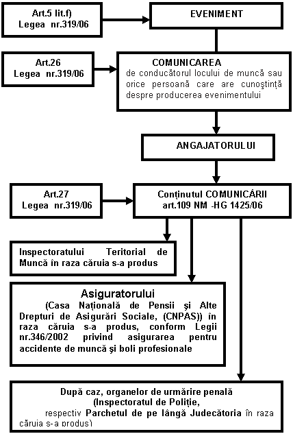 Art.26. - Orice eveniment, asa cum este definit la art.5 lit. f), va fi comunicat de indata angajatorului, de catre conducatorul locului de munca sau de orice alta persoana care are cunostinta despre producerea acestuia.