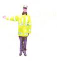 bratele intinse orizontal - semnifica oprire pentru participantii la trafic care circula din fata si din spate;