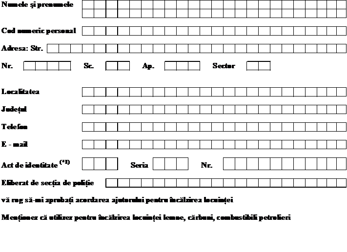 pentru acordarea ajutorului pentru incalzirea locuintei cu lemne, carbuni, combustibili petrolieri