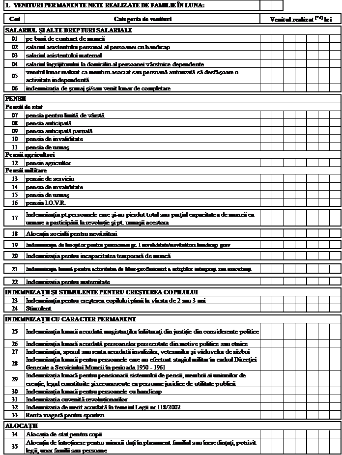 In cazul familiilor cu mai mult de 8 membri se va completa o anexa. Prin membri de familie se inteleg si persoanele intre care nu exista relatii de rudenie, dar care locuiesc impreuna, sunt inscrise in cartea de imobil si sunt luate in calcul la stabilirea cheltuielilor de intretinere.
