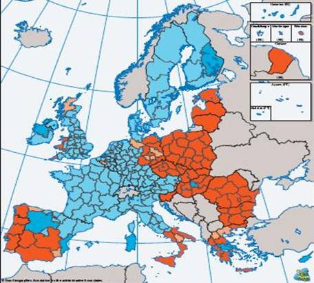 Fig.1 Regiuni eligibilie 2007-2013 - politica de coeziune