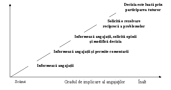 daca a fost facilitata pe deplin participarea, deciziile vor fi acceptate de majoritatea membrilor care vor participa la implementarea lor. Fiecare actiune din cadrul unui sistem organizational este determinata de o decizie care se bazeaza pe informatii. Informatia trebuie transmisa sub forma unui anumit cod. Fiecare subsistem al organizatiei isi elaboreaza un cod propriu pentru transmiterea/receptionarea informatiilor. Codul are o functie selectiva, permitand patrunderea in sistem numai a informatiilor considerate semnificative si o functie pragmatica, furnizand informatia intr-o maniera utilizabila. Eficienta procesului de luare a deciziei este diminuata atat de subinformare cat si de suprainformare. In primul caz, informatiile prea sarace nu pot fundamenta procesul de luare a deciziilor, iar in al doilea caz, excesul de informatii poate bloca acest proces. Un sistem organizational trebuie sa fie asadar inalt selectiv [10], dar fara a bloca patrunderea unor informatii care, desi nu au utilitate in prezent, pot fi potential utilizabile.