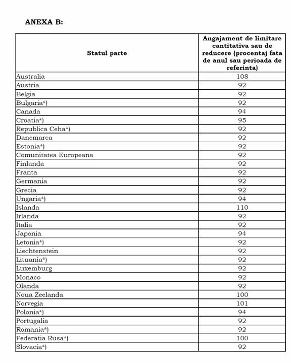 pe Anexa B a Protocolului de la Kyoto (similara cu Anexa I a Conventiei) sa comercializeze intre ele unitati ale cantitatii atribuite (AAU-uri). Astfel o tara care a realizat o reducere a emisiilor de GHG fata de angajamentul prevazut in Anexa B a Protocolului de la Kyoto are posibilitatea sa vanda surplusul realizat unei alte tari care nu si-au indeplinit acest angajament.