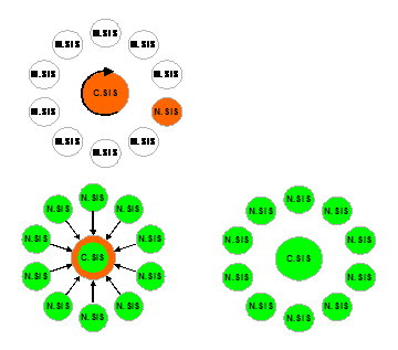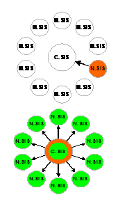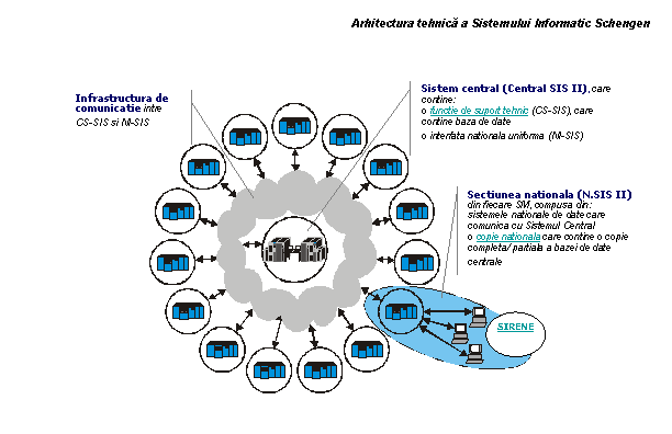 Toate sistemele nationale sunt conectate on-line cu sistemul central. Atunci cand un stat introduce date in SIS, prin intermediul N SIS, acestea sunt transmise catre C SIS, de unde automat sunt retransmise catre toti corespondentii nationali, toate bazele N SIS. In acest fel se asigura uniformitatea tuturor bazelor nationale.