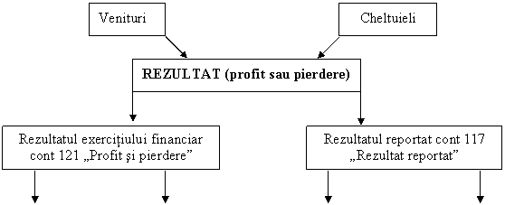 121 "Profit sau pierdere" A/P (-)C 1171 "Rezultatul reportat" A/P (-)D 1061 "Rezerve legale" P (-)D |