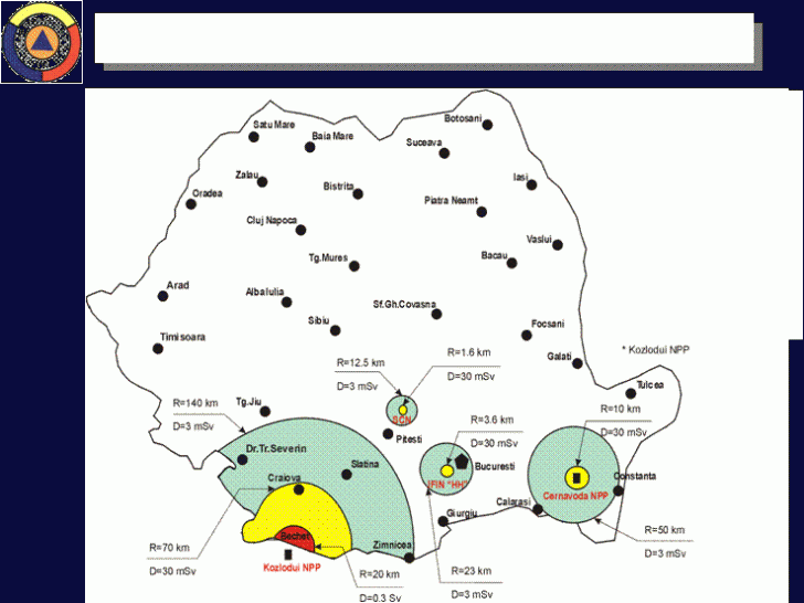 localitatile dispuse in zonele de risc major (nuclear, chimic, aval de constructii hidrotehnice etc.).