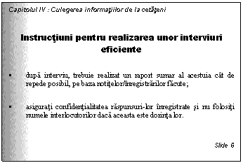 scop: adaptarea instrumentelor de culegere a informatiilor de la cetateni la o situatie reala;