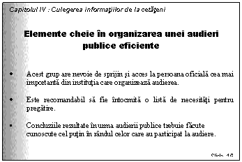 scop: familiarizarea participantilor cu elementele unei audieri publice ca tehnica a consultarii populatiei;