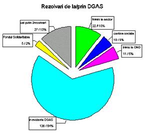 Lipsa de solutii sau de tergiversarea gasirii acestora de catre administratia publica locala pentru rezolvarea problemelor cetatenilor cu o situatie sociala dificila - facand referire tot la studiul prezentat la capitolul 4, din cele 211 persoane care au facut cereri la DGAS, numai 75 au primit o forma de ajutor, care in toate situatiile nu a determinat o imbunatatire a situatiei generale a subiectilor.