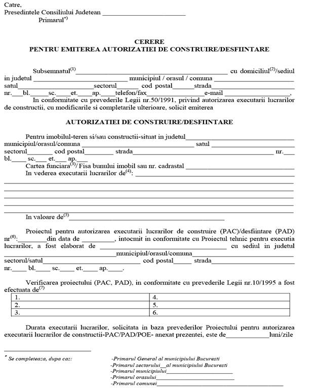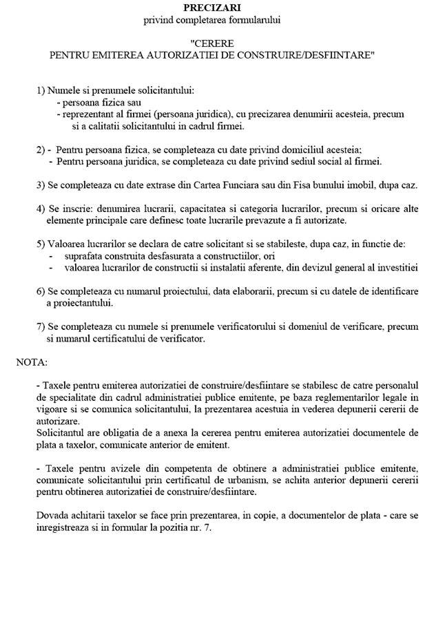 6.1 Cerere pentru emiterea autorizatiei de construire/desfiintare