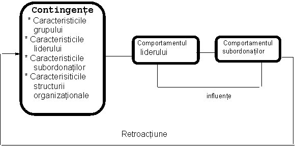 Teoreticienii contingentei in materie de lidership, urmaresc descoperirea variabilelor care permiteau anumitor caracteristici si comportamente ale managerilor, sa releve eficienta intr-o situatie data.
