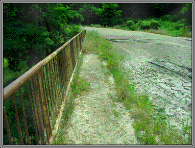 scurgerea apelor este asigurata partial deoarece datorita pantelor drumului si a lipsei podetelor din corpul drumului santurile de pamant sunt partial colmatate sau apa se scurge pe platforma drumului;
