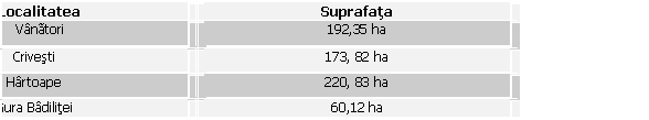 Tabelul nr. 2 : Suprafata satelor comunei Vanatori
