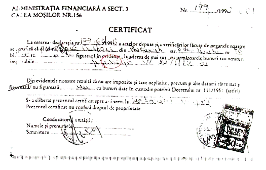 B.C. a modificat termenul de valabilitate al unui certificat fiscal eliberat de Administratia Financiara a Sectorului 3, transformand cifra '1' in '4'. In acest fel, in loc de data de '16.01.1996', a obtinut data de '16.04.1996'. Actul modificat a fost apoi xerocopiat, iar copia obtinuta, prezentata la Notariat, in scopul vanzarii unui apartament pe care-l mai vanduse si altei persoane. Cercetand copia, atentia expertului a fost atrasa de faptul ca cifra '4' avea un plasament nefiresc si dimensiuni mai mari decat restul cifrelor. De asemenea, el a constatat ca in partea inferioara stanga a cifrei '4' exista un traseu grafic de mici dimensiuni, subtiat si intrerupt, care are tendinta de a se uni cu prima grama verticala a acestei cifre si care ar fi putut proveni de la o eventuala radiere a cifrei initiale. Aceste elemente l-au determinat pe expert sa solicite organului de urmarire penala, originalul certificatului fiscal. Examinarea comparativa a acestuia cu actul in litigiu, a permis demonstrarea indubitabila a falsului. La cercetarea prin suprapunere in lumina transmisa, s-a constatat ca punctele care despart anul, luna si ziua, precum si cele aflate in partea superioara dreapta a grupurilor de cifre '01' si '04', au un plasament identic, ceea ce inseamna ca piesele examinate reprezentau exemplarele aceluiasi document.