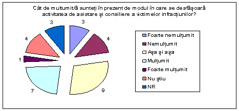 Cat de multumiti sunteti in prezent de modul in care se desfasoara asistarea si consilierea victimelor infractiunilor? |