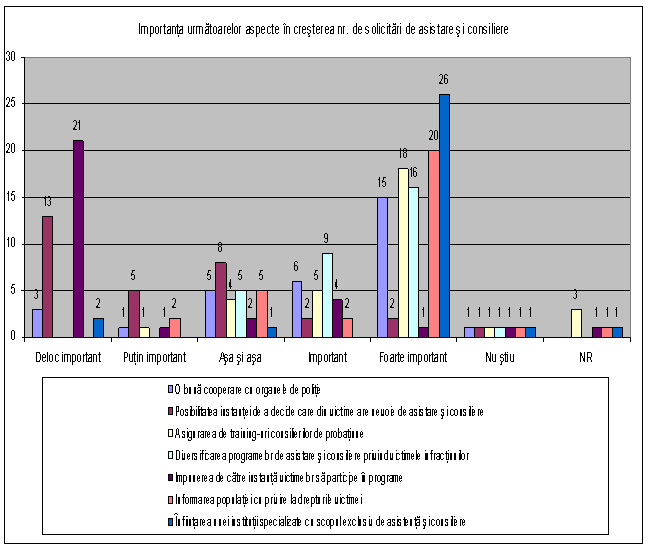 Cat de importante vi se par urmatoarele aspecte pentru ca numarul de victime ale infractiunilor care beneficiaza de consiliere psihologica si asistenta sa se mareasca? |