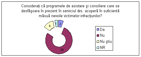 Considerati ca programele de asistare si consiliere care se desfasoara in prezent in serviciul dvs. acopera in suficienta masura nevoile victimelor infractiunilor? Care sunt motivele? |