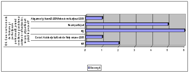 In ceea ce priveste intrebarea Q9 "Care sunt cursurile de formare si perfectionare profesionala, privind consilierea si asistarea victimelor infractiunilor, la care ati participat pana in prezent?" situatia este urmatoarea: