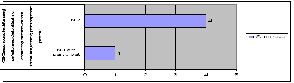 - consilierii de probatiune din Suceava au urmatoarele raspunsuri: un numar de patru consilieri au bifat raspunsul "NR" si un singur consilier a declarat faptul ca nu a participat pana in prezent la nici un curs de formare si perfectionare profesionala.