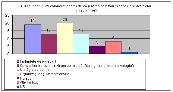 Cu ce institutii ati colaborat pentru desfasurarea asistarii si consilierii victimelor infractiunilor? |