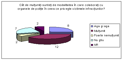 Cat de multumiti sunteti de modalitatea in care colaborati cu organele de politie in ceea ce priveste victimele infractiunilor? |