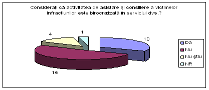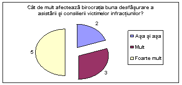 Considerati ca activitatea de asistare si consiliere a victimelor infractiunilor este birocratizata in serviciul dvs.? Cat de mult afecteaza birocratia buna desfasurare a asistarii si consilierii victimelor infractiunilor? |