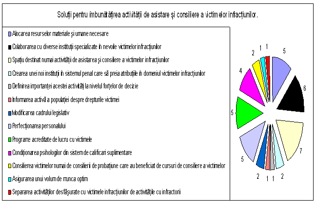 Ce solutii ati identifica pentru imbunatatirea activitatii de asistenta si consiliere a victimelor infractiunilor in serviciul in care lucrati? |